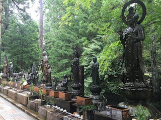 The other end of town was this cemetery that held 20000 tombs and also the mausoleum of a Buddhist saint who is said to have attained enlightenment after learning Buddhism from China and spreading the word in koyasan and around Japan. The walk through the cemetery was quiet, peaceful and had an air of wonder and respect around it as you passed through all the tombs, now covered with grass and moss, some Buddha statues in a range of emotions, a pile of Buddhas in the shape of a mountain, even a space ship for some reason I couldn't discern.